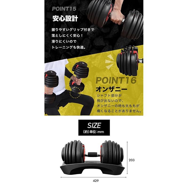 | 商品の特徴 | BARWING(バーウィング) 可変式ダンベル 24kg ① BARWING(バーウィング。月額2,980円レンタルプラン:BARWING バーウィング 可変式ダンベル。BARWING 可変式ダンベル 最大24kg② 月額2,980円レンタルプラン。調整可能な重量: 5〜24.5kg色: 黒付属品: スタンド付き24kgの可変式ダンベル片方のみの出品です。もう片方は未開封の状態のため、一応別々で出品しています。左右のノズルを回すことで簡単に重量を変更することができます。重量を間違えて購入してしまい、サイズ感も私には合わなかったので出品します。写真の通り開封しており重さの変更などできることは確認していますが、筋トレで使用等はしていません。中古品のため購入は自己責任でお願いします。何かご不明な点があればお答えさせていただきます。。BARWING(バーウィング) NEW モデル 可変式ダンベル 24kg その①。mkさん 専用。フレックスベルダンベル 32kg×2 スタンドセット①。ONI ニースリーブPRO IPF公認 膝サポーター 鬼プロ A級品 (M)。IROTEC ラバーダンベル 26kg②。P.L.COLLEGE トレーニング・パワーベルト 黒 XLサイズ。JM♥POWERBLOCK ブロック 可変式ダンベル 41Kg② | ||