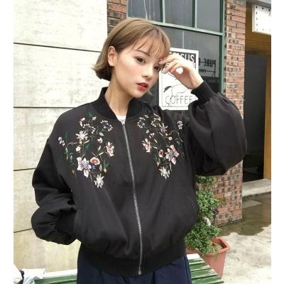 - レディース > ジャケット・アウター > *新品*スマイリー*花柄刺繍ロゴ入り*ジャケット 大きいサイズ レディース ジャケット 花柄刺繍MA-1 花柄 刺繍 ノーカラーブルゾン ミリタリー