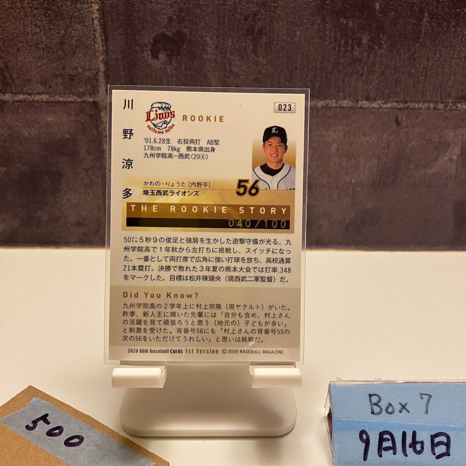 | メーカー | 川野涼多選手直筆サインカード 埼玉西武ライオンズ |
