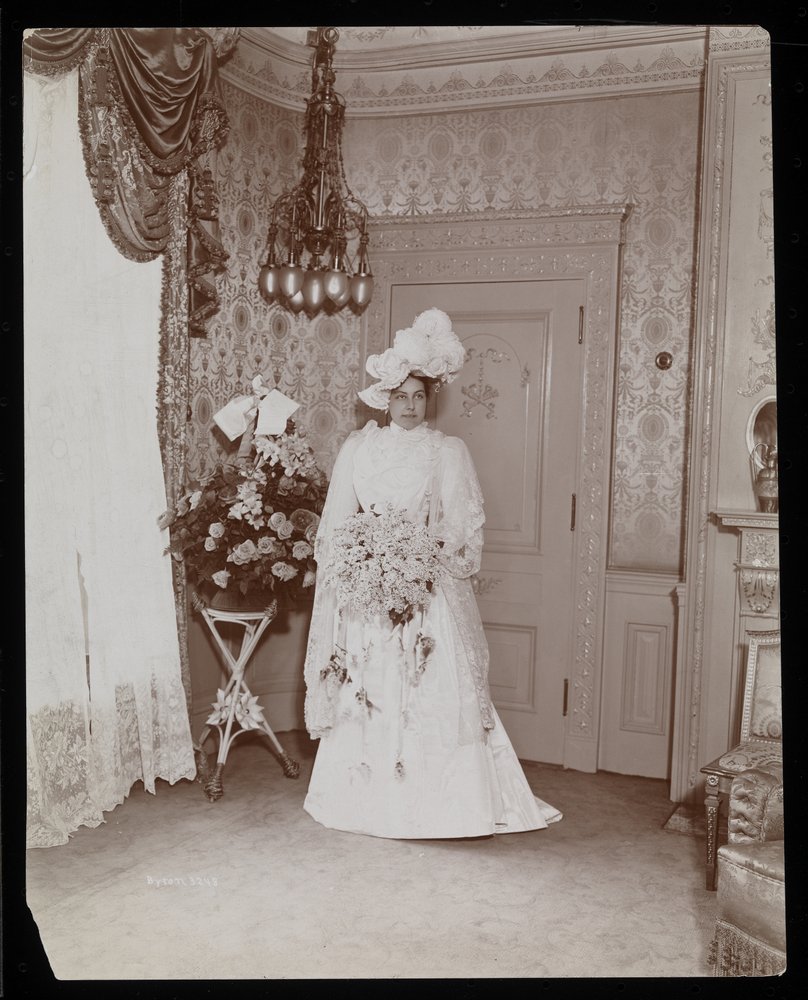 - 美術品・アンティーク・コレクション > コレクション > 19世紀アンティーク銅版画 新婦と姉妹/友人 花実装飾ウェディングドレス 手彩色 1896〜8年にニューヨークのウェディングドレスでポーズをとった